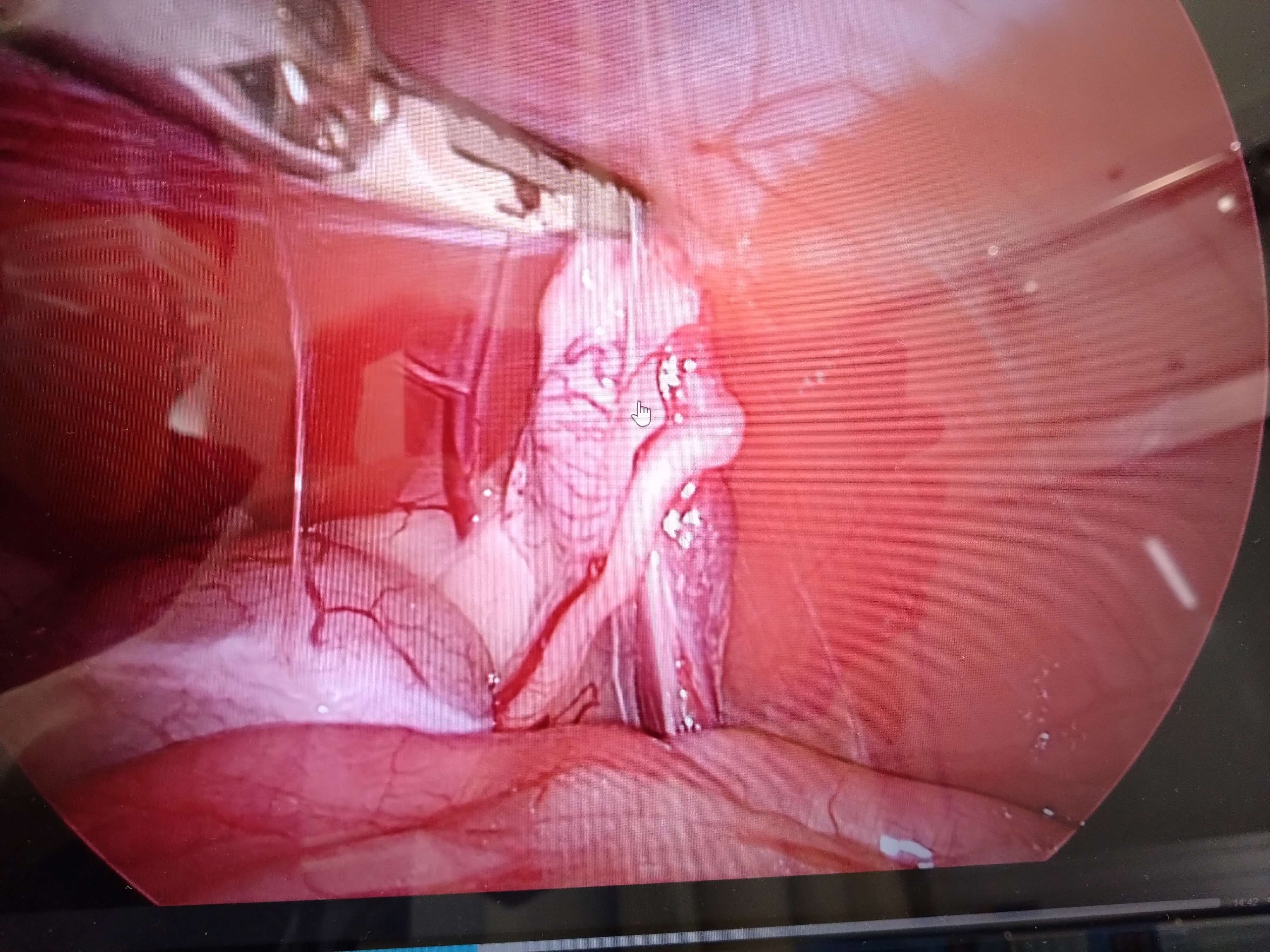 腹腔内での精巣を持ち上げた様子