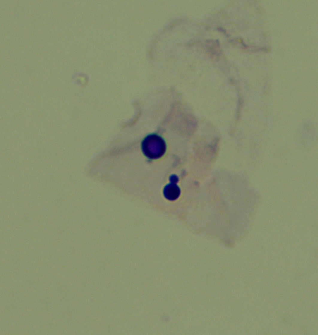 鏡顕して、400倍視野で複数の菌体を認めることが所見として認められる。