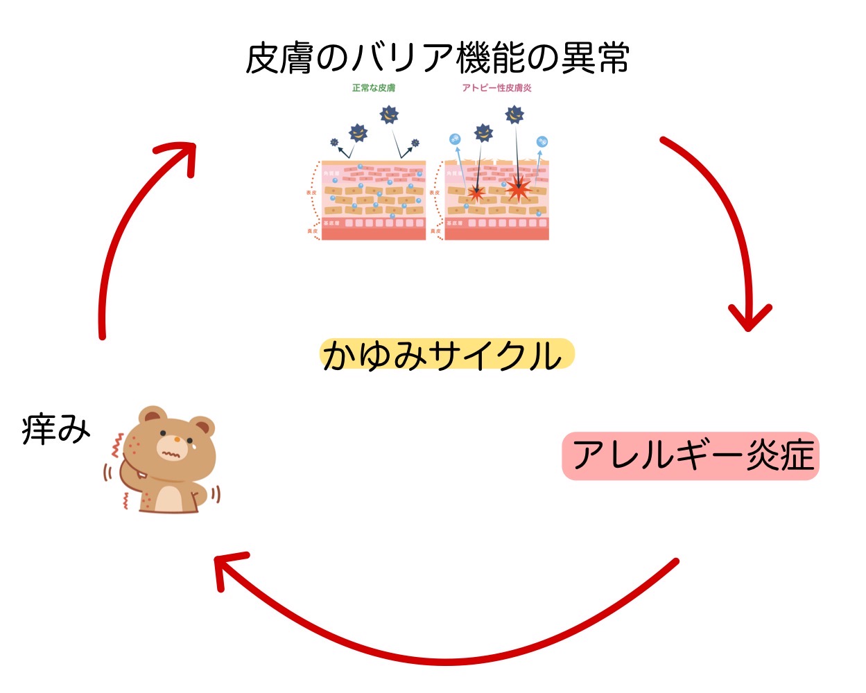 下図がかゆみのサイクルであり、かゆみが悪循環をうんでしまいます。